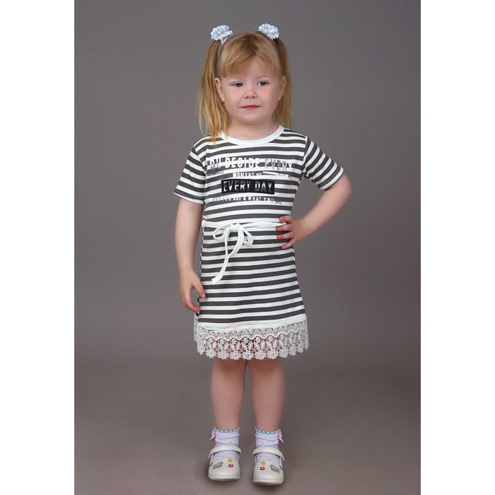 Очарование, да и только! Неотразимое платье для Вашей дочки, сестрички, племянницы, внучки и правнучки. Изделие удачно совмещает в себе дерзкий стильный принт «Слова» и нежную расцветку ткани и кружево. Горловина платья окантована в цвет вещи, рукава подшиты, подол обработан мягким молочным кружевом. Дополнением к модели будет пояс, который можно использовать на свое усмотрение, завязав спереди, сзади, или вообще отложив.