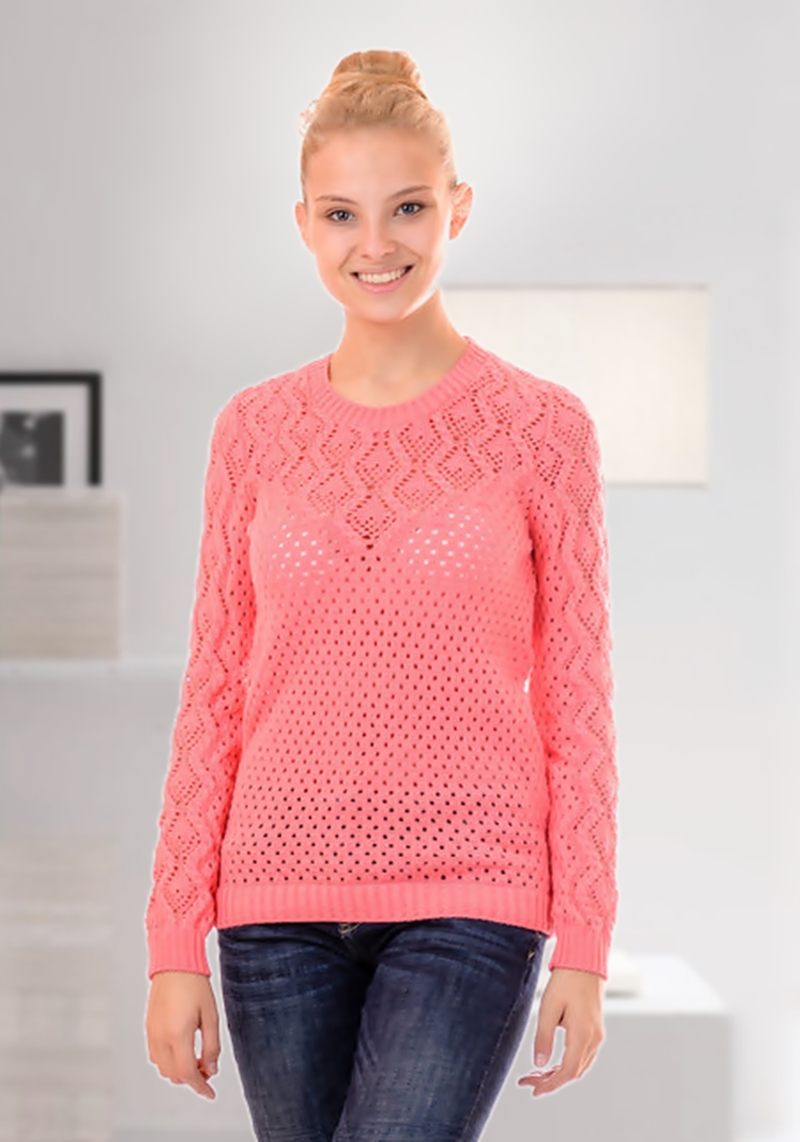 . Модный и стильный свитер согреет холодной зимой и будет выглядеть безупречно. Цвет: коралл.