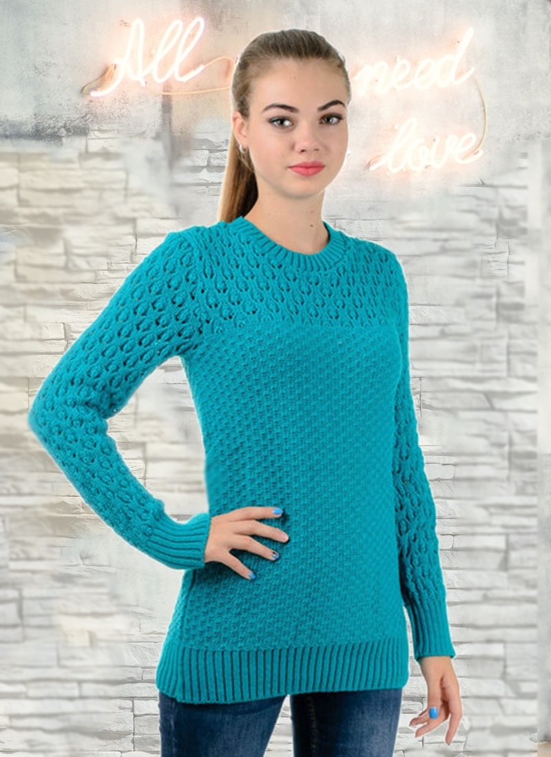 Свитер женский J533V .Удобный вязаный свитер с длинным рукавом. Цвет: мята. Состав: 65%-акрил,20%-полиэстр,15%-эластан. Вырез овальный. Размер: 42, 44, 46