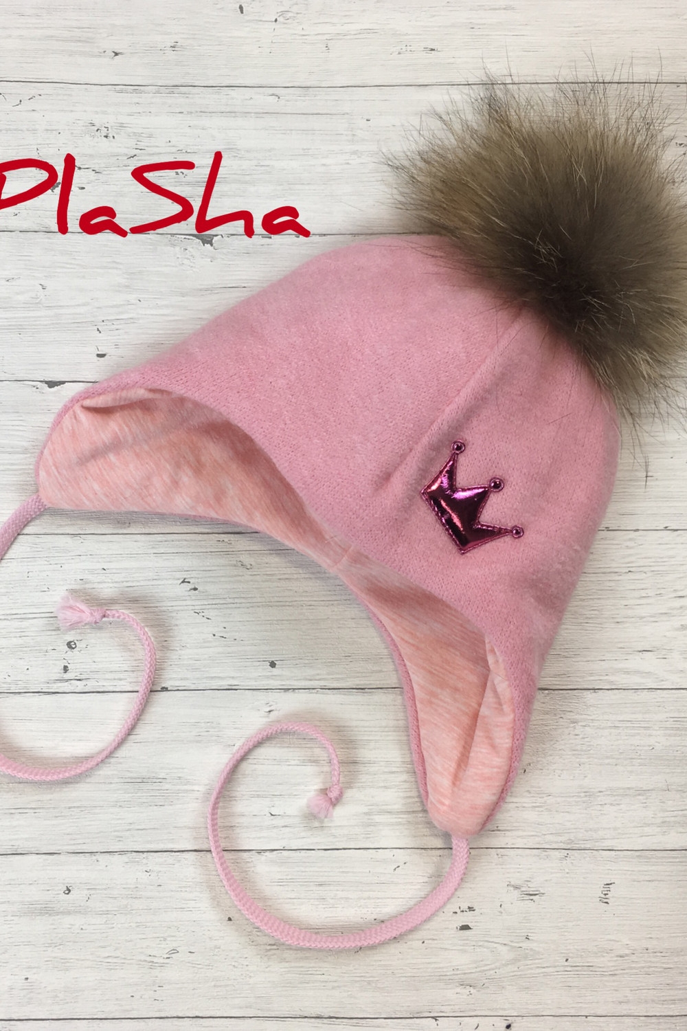 Состав: Помпон - натуральный енот, верх - 65% акрил, 30%-шерсть, 5% лайкра подклад шапки 95% хлопок, 5% лайкра утеплитель Alpolux 100 Внутренняя сторона шапочки сшита из хлопковой ткани, благодаря этому шапочка очень приятна ребенку, так как не вызывает аллергии. Утеплитель Alpolux был разработан российскими и австрийскими экспертами специально для нашего климата. Он идеально сохраняет тепло, но при этом тонкий и легкий. В его состав входит шерсть мериноса и микроволокно. Изделие из него мягкое, упругое, отлично сохраняет форму. В районе ушек в шапку вшиты ветронепродуваемые мембраны. Шапка украшена аппликацией в виде короны.