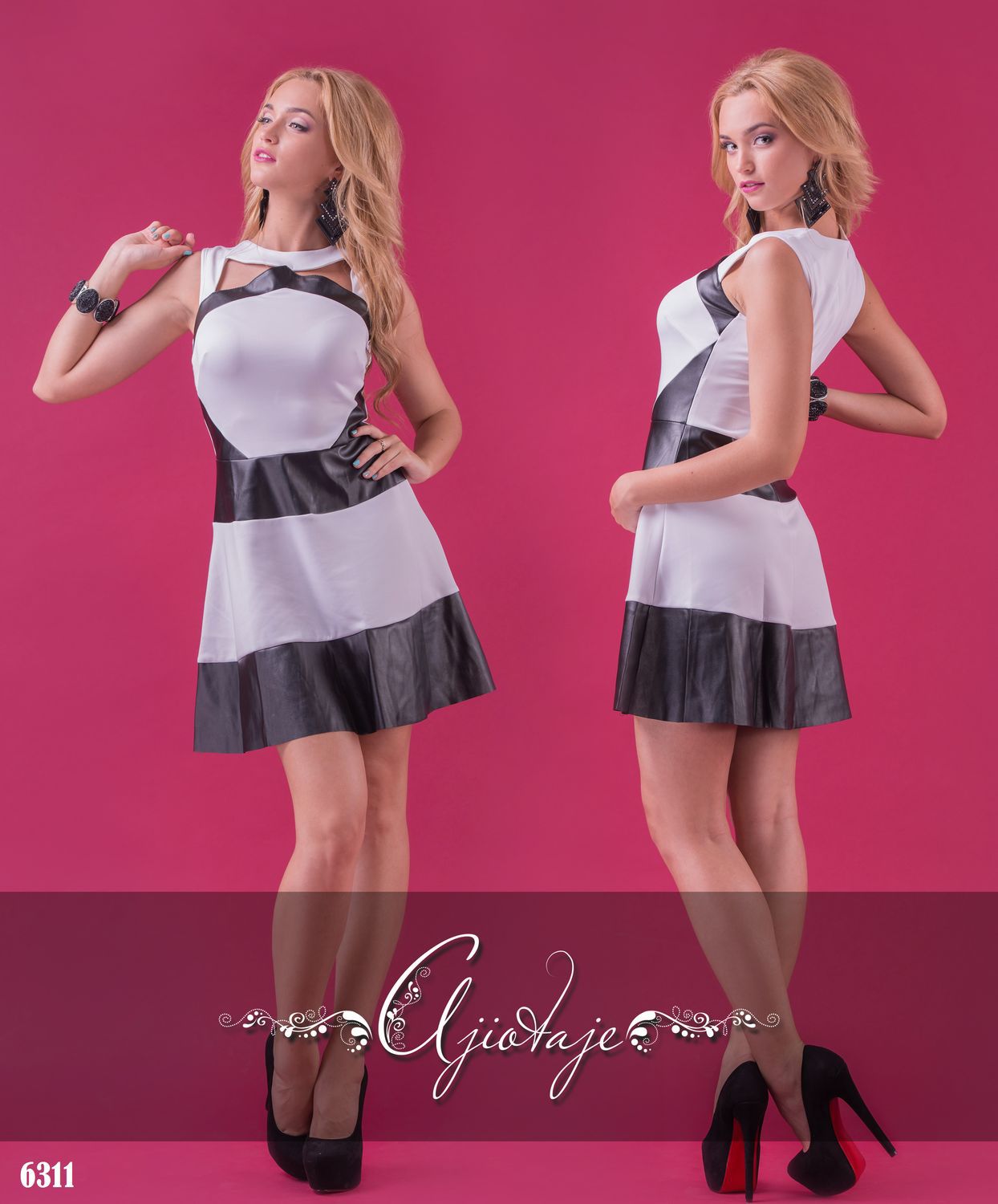 Платье со вставками из экокожи.