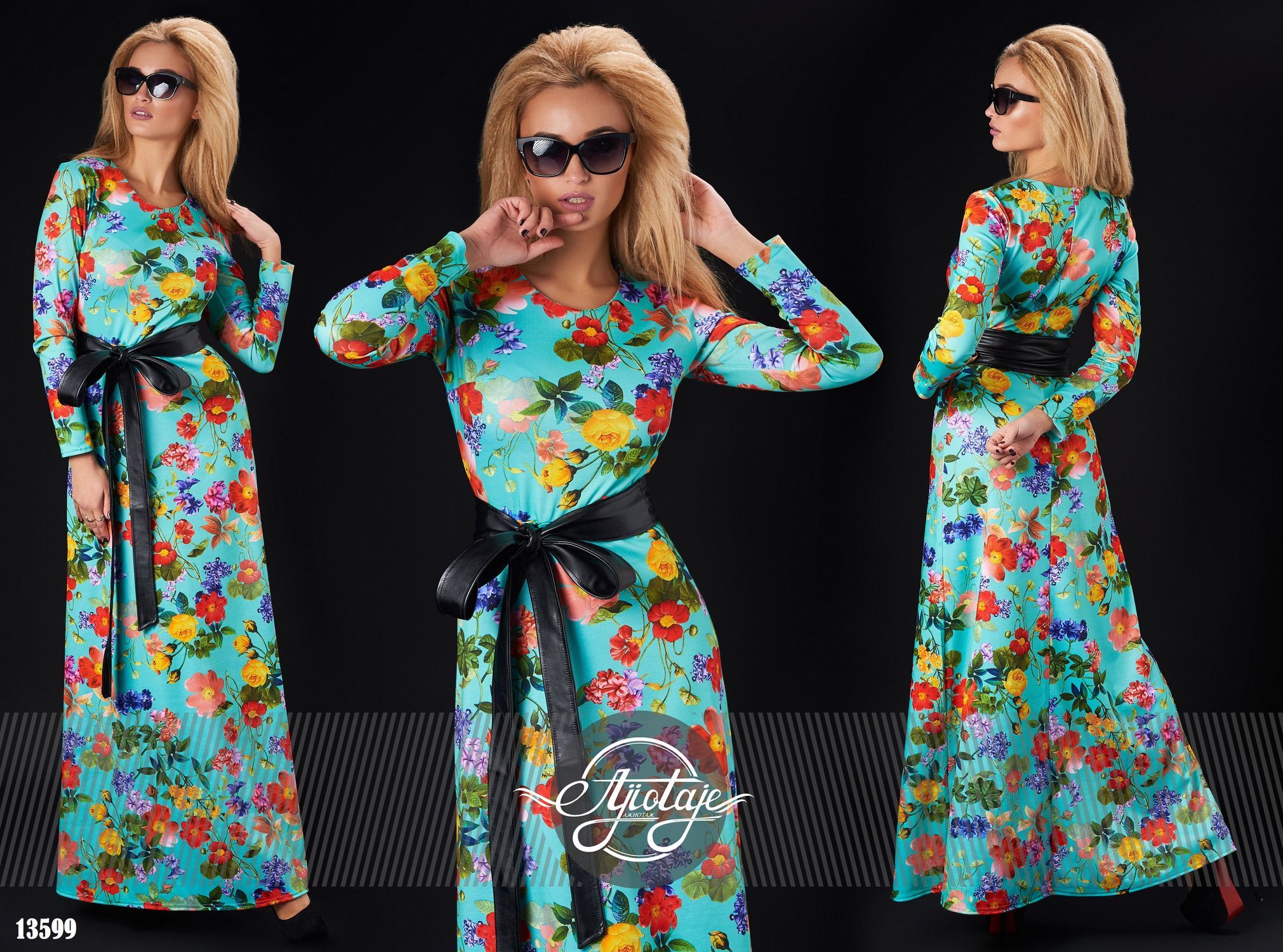 Платье в пол с цветочным принтом.