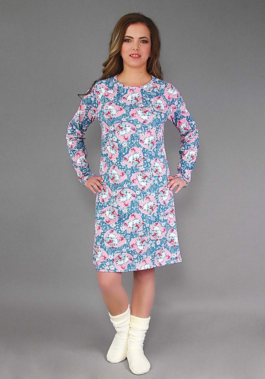 Прелестная сорочка проста и комфортна- горловина окантована, длинные рукава и низ подшиты, силуэт слегка расширен к низу. Качественная и приятная на ощупь ткань обеспечит Вам спокойный сон.