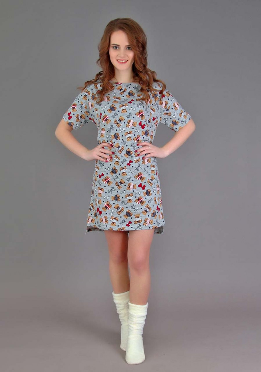 И снова сорочка Даниэла в новой расцветке "Мишки". Короткий рукав, прямой силуэт, удлиненная спинка с небольшими разрезами по бокам придают модели изящества и оригинальности.