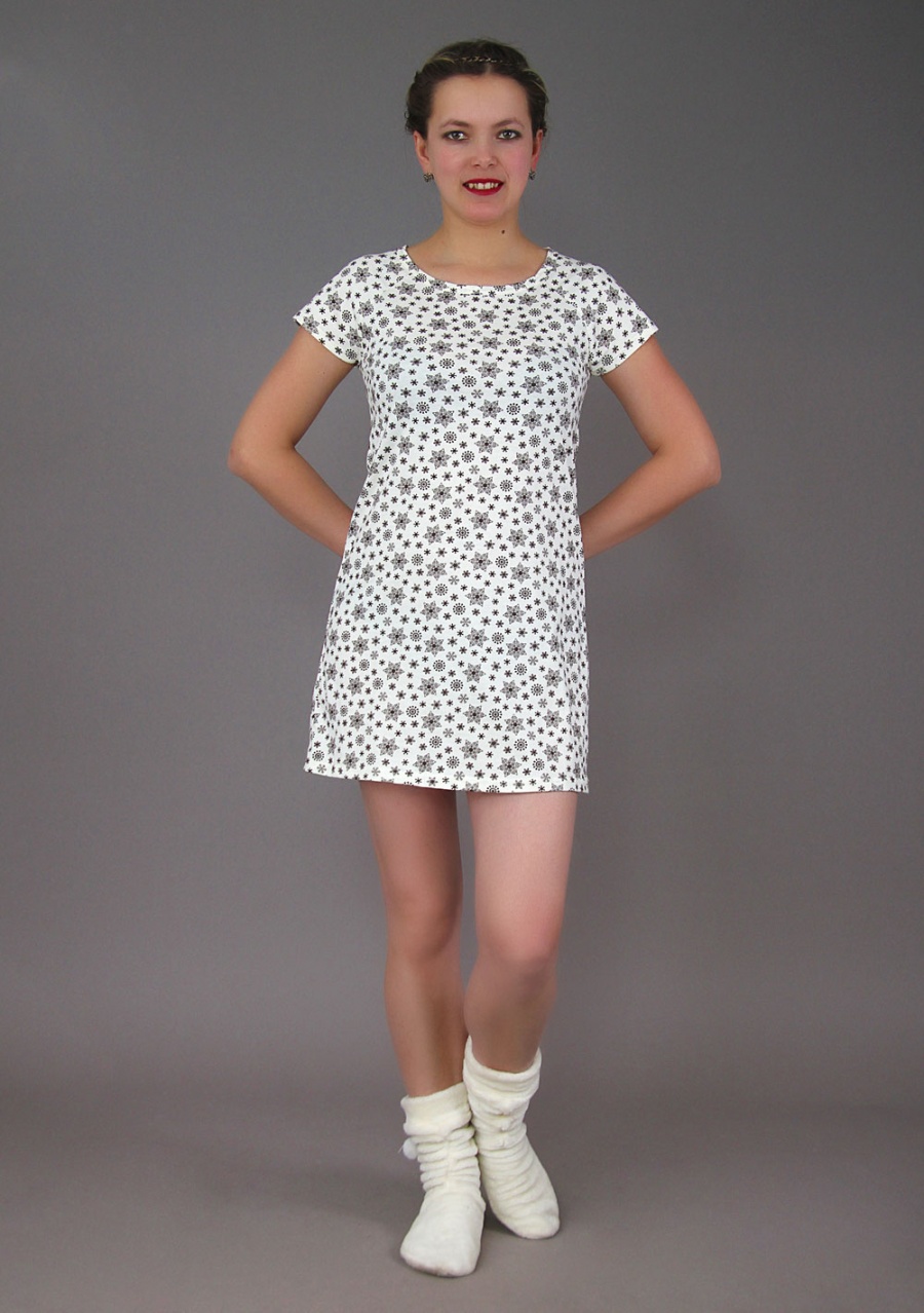 Ткань: кулирка. Состав: 100% хлопок.Универсальная сорочка "Дана" с расцветкой "Снежинки" порадует Вас своей универсальностью и простотой.