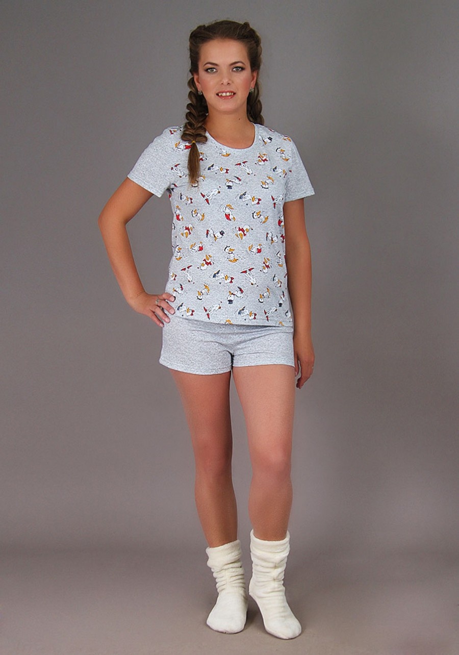 Самая хитовая наша пижама! Ничего лишнего - футболка и шорты. Превосходное сочетание цветов, простой и максимально удобный крой - что еще нужно для комфортного сна? Горловина футболки обработана бейкой, рукава и низ её подшиты также, как и низ шорт с поясом на резинке.