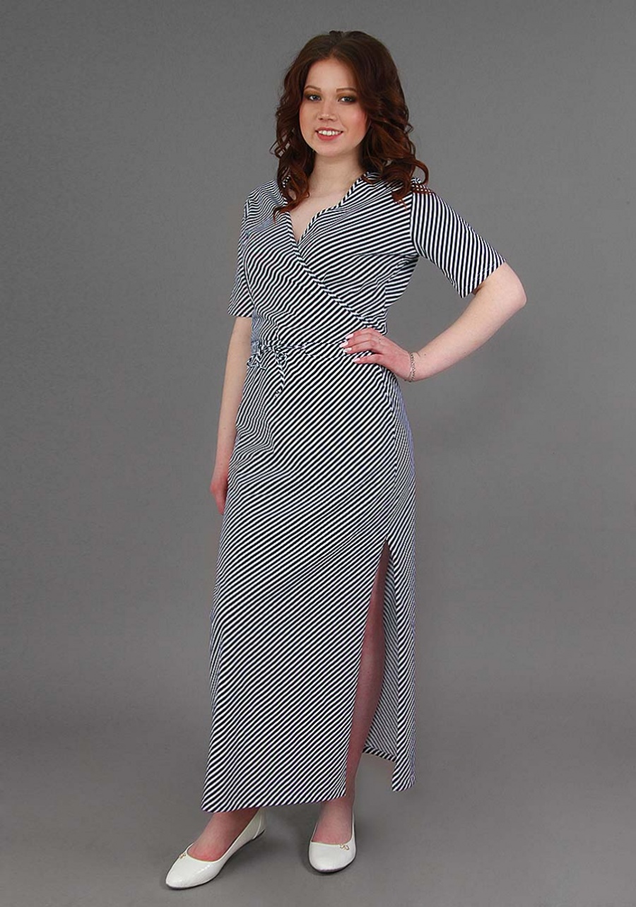 Платье прекрасно подходит для дома и отдыха. Обладает окантованной горловиной, подшитыми рукавами и подолом. Отличительной чертой модели является небольшой разрез нижней части изделия.