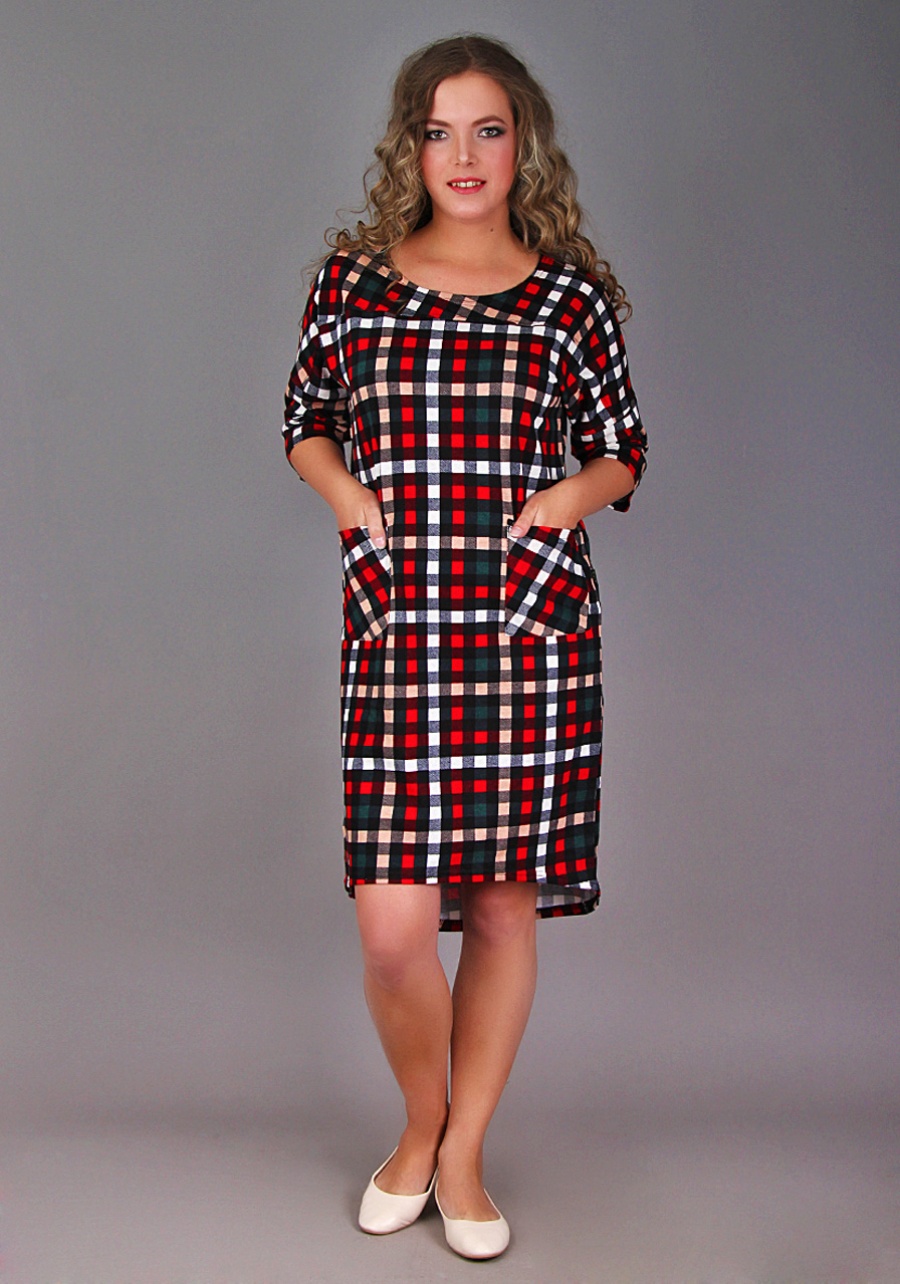 Элегантное платье для дома и отдыха в модную расцветку "Клетка". Рукава три четверти не мешают выполнять бытовые дела, умеренная длина не стесняет движений, два передних кармана помогут носить с собой важные мелочи. Оригинальности модели придает слегка удлиненная подшитая спинка изделия.