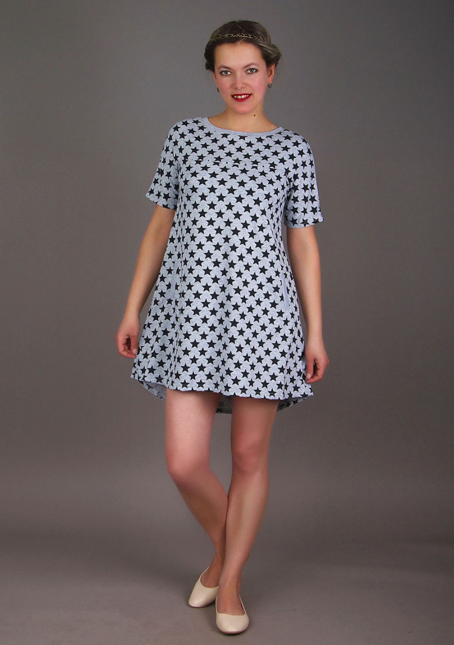 Ткань: кулирка. Состав: 100% хлопок.Коротенькое стильное платье отлично сидит и безупречно выглядит. Короткий рукав, имитация карманов и небольшая длина позволяет платью быть отличным летним вариантом.