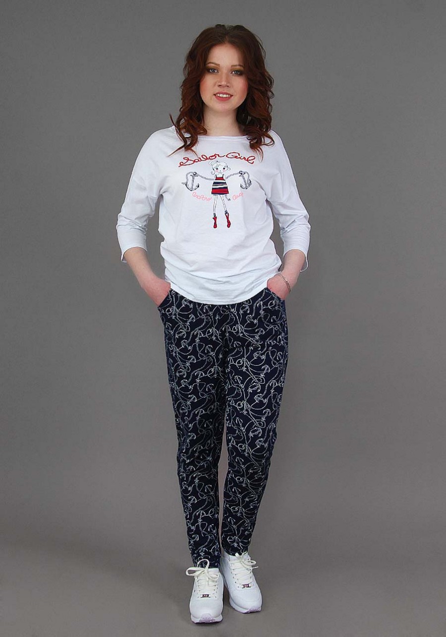 Очаровательный костюмдля дома и отдыха с новым принтом "Морячка". Кофта подшита со всех сторон, брюки обладают поясом на резинке и шнурком, двумя карманами и манжетами. Ткань очень легкая и приятная в носке.
