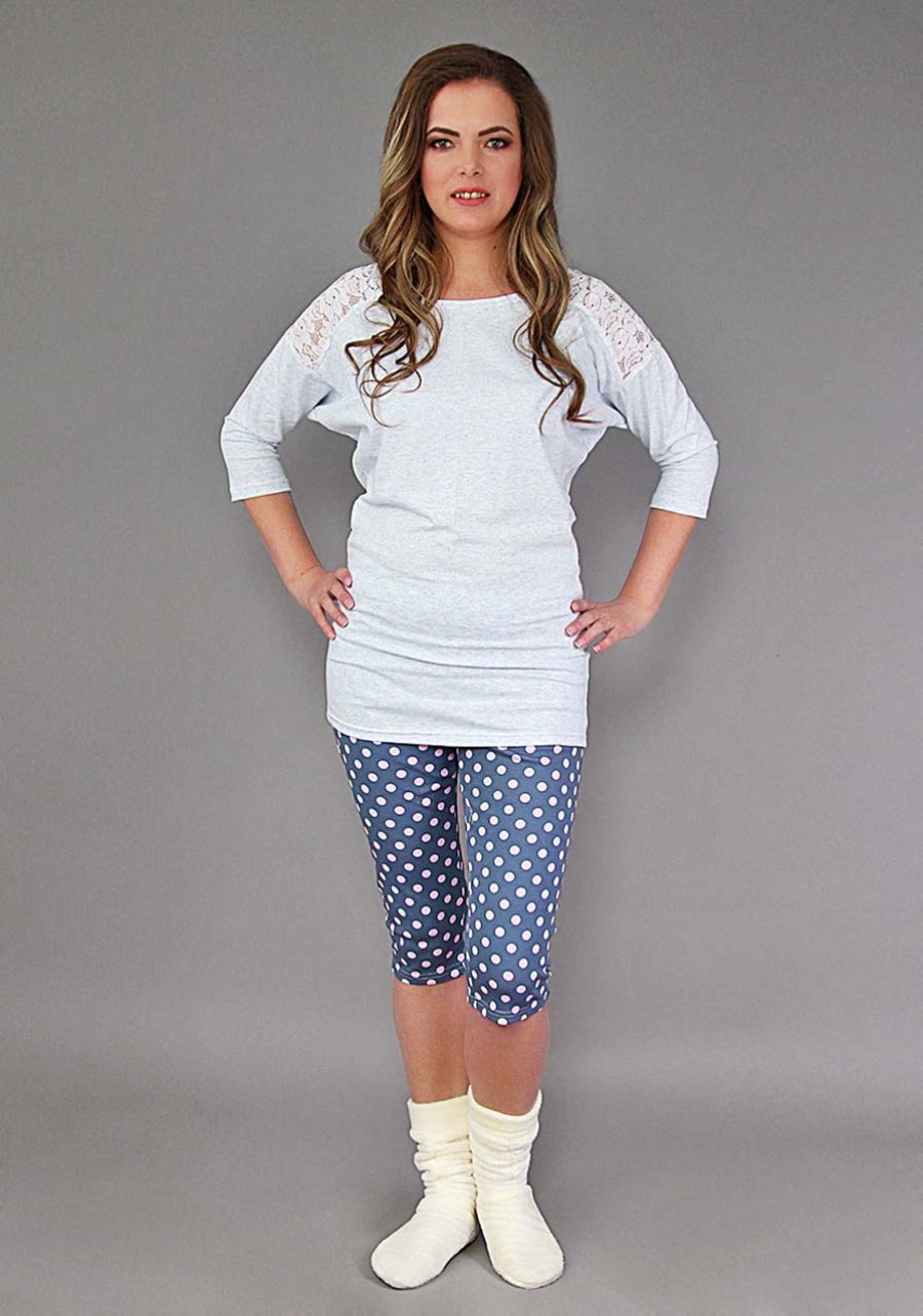 Кто любит красоту, изысканность и уют, это костюм для Вас. Удлиненная кофта с рукавом 2/3 и кружевной вставкой в спокойной расцветке добавят вашему образу нежности, а бриджи на резинке не стеснят Ваших движений и помогут чувствовать себя комфортно. Костюм Фантазия будет удобен как дома, так и на отдыхе.