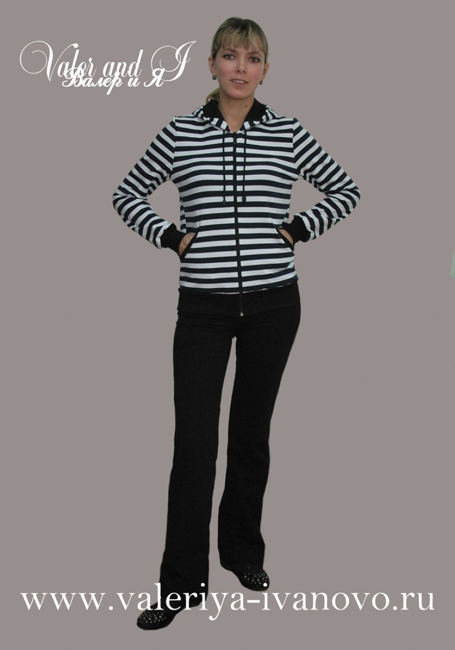 Прекрасный брючный костюм! Очаровательные облегающие брюки сидят строго по фигуре и подчеркивают самые соблазнительные формы! Кофта на молнии удобна и функциональна благодаря капюшону, резинке и карманам.