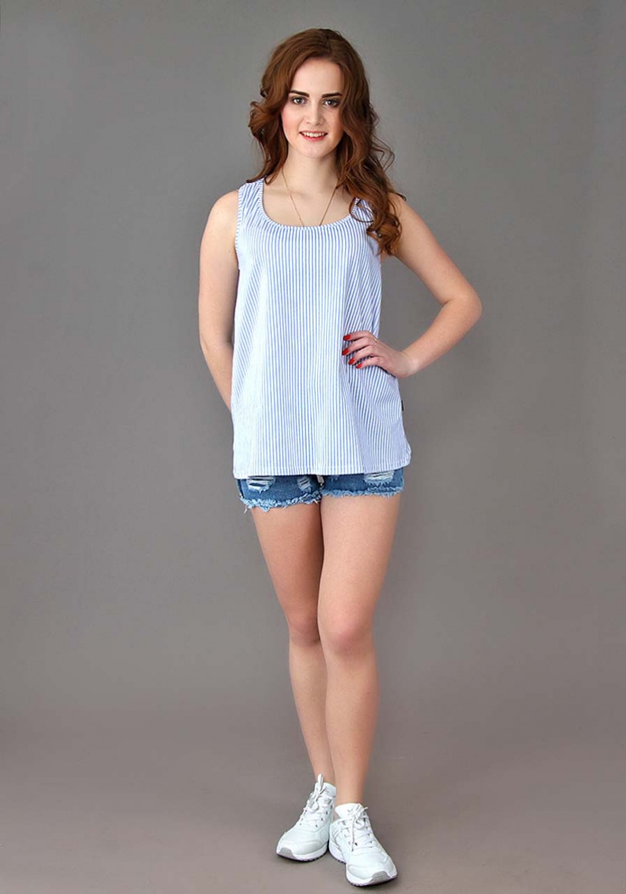 Летняя и необыкновенно воздушная маечка Веста! Свободный покрой, легкая ткань и нежная расцветка - достоинтсва изделия. Горловина и проймы окантованы, низ изделия подшит, очаровательный бантик на спине.