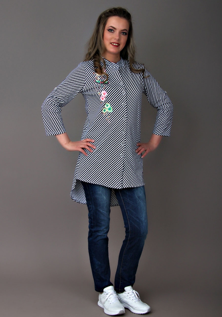 Стильная рубашка - вещь, необходимая любой девушке. Как говорят, "И в пир, и в мир" - в таком предмете одежды можно выйти в гости, на прогулку или работу. Идеальная - длинный рукав может с легкостью превратиться в рукав три четверти, благодаря пуговке и планке; удлиненная спинка изделия позволяет носить рубашку как с шортами, так и с джинсами, а также с абсолютно любой обувю; принт "Сакура" придется по вкусу любой ценительнице красоты и нежности в одежде. Порадует Вас удивительное качество ткани и пошива - при правильном уходе рубашка не теряет формы и цвета, принт не линяет и не меняет цвета.