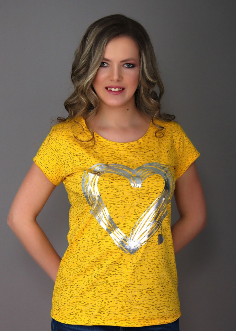 Безусловно, лучшая футболка с милым принтом "Сердце". Обратите внимание на обработку краев изделия - изюминка модели в фальшиво-необработанном крае. Не торопитесь волноваться, футболка сшита особым образом - необработанный край лишь видимость, на самом деле горловина, рукава и подол обработаны качественно и аккуратно. Внимание! Стирка модели только при 30°С!