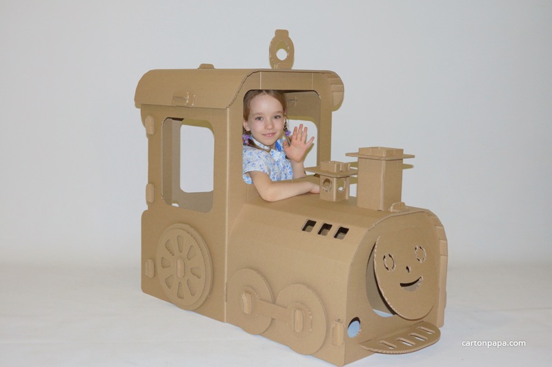 Ну а Лукошкино... Недалеко от Москвы есть деревня с таким названием и оно мне очень нравится! В нем есть что-то домашнее, какой-то уют и теплота... Как дома у бабушки и дедушки, где вкусно пахнет блинами и где тебе всегда рады и ждут! И очень здорово однажды приехать туда на таком красивом паровозике! Отличный подарок и развлечение на природе к детскому дню рождения, особенно если именинник увлекается железной дорогой. Сделан из прочного гофрокартона толщиной 7 мм. и очень быстро собирается без клея и каких-либо креплений.