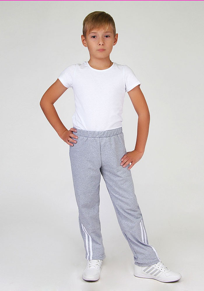 яркие стильные брюки для занятий физкультурой хорошо будут смотреться и на мальчиках и на девочках. Комфортный свободный крой и пояс на резинке не сковывают движений при любых активных занятиях. А контрастные лампасы по бокам придают брюкам эффектный вид.